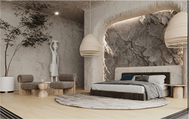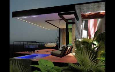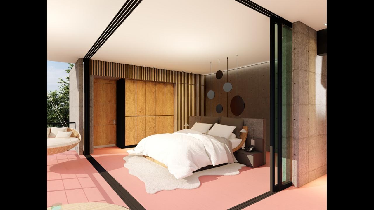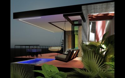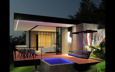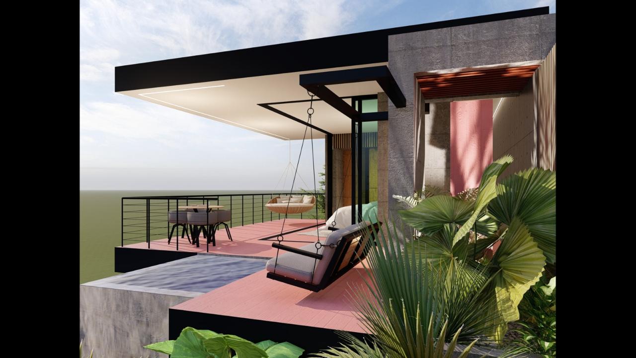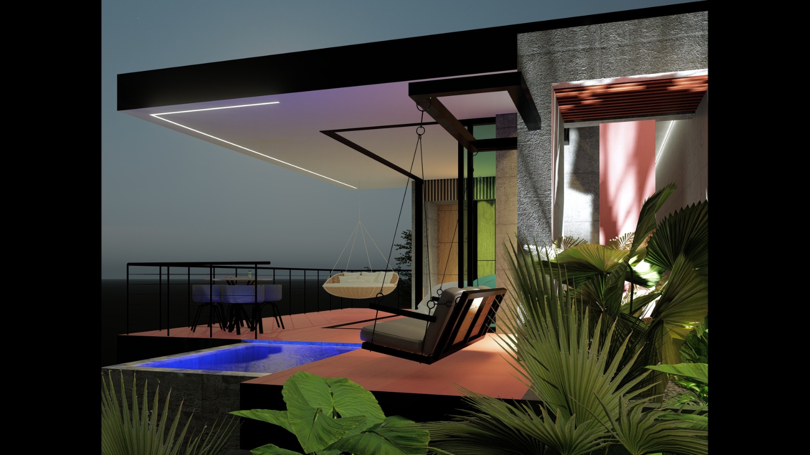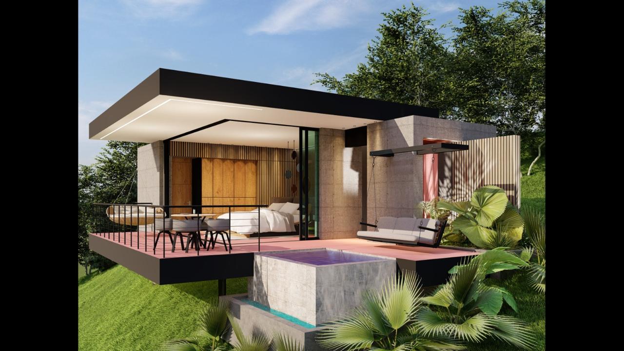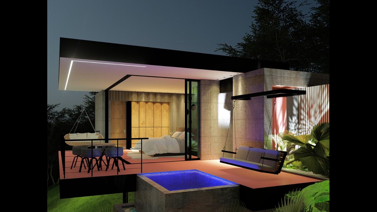 El proyecto se nutre de la rica herencia precolombina, utilizando diversas volumetrías. El edificio principal, con un diseño escalonado que evoca las pirámides mayas, alberga en su planta baja una recepción, baños, una zona de juegos y un bar. En el nivel inferior, encontramos un spa de relajación, mientras que en los pisos 2 y 3 se disponen siete habitaciones ubicadas en la torres principal, cinco de las cuales cuentan con jacuzzi privado y dos suites con piscina climatizada, todas con vistas a la ciudad. Además, en la torre B se desarrollan ocho habitaciones independientes, cada una con jacuzzis.